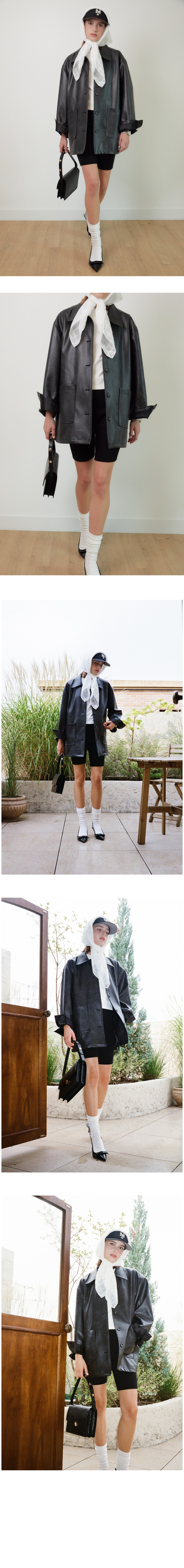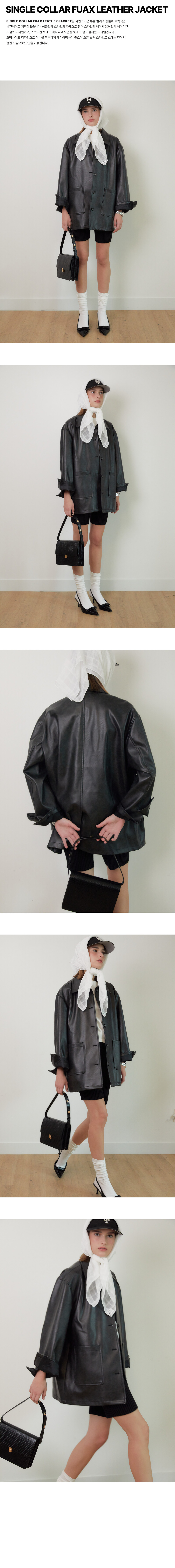 SINGLE COLLAR FAUX LEATHER JACKET (BLACK)