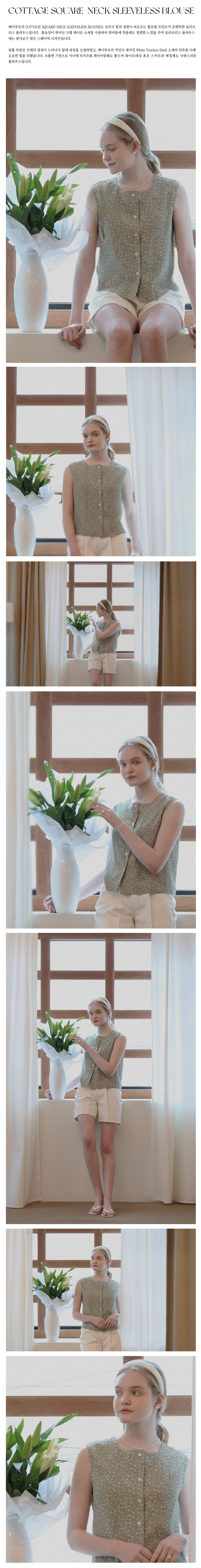 COTTAGE SQAURE-NECK SLEEVELESS BLOUSE (FOREST GREEN)